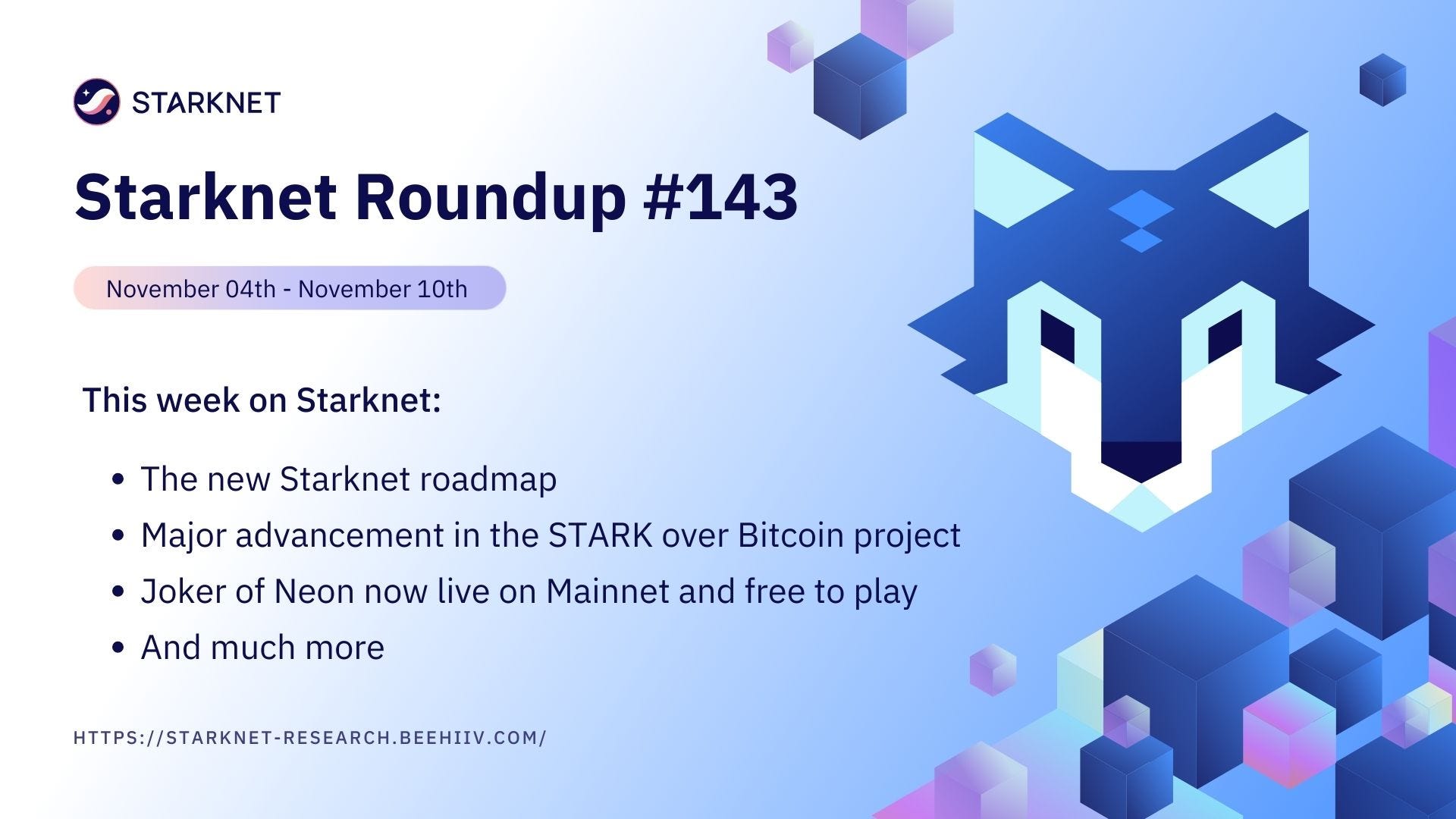 Welcome to the 143rd edition of my weekly comprehensive Starknet summary. Reading this newsletter allow you to catch up on all the important news from the last week in just 10 minutes of reading.