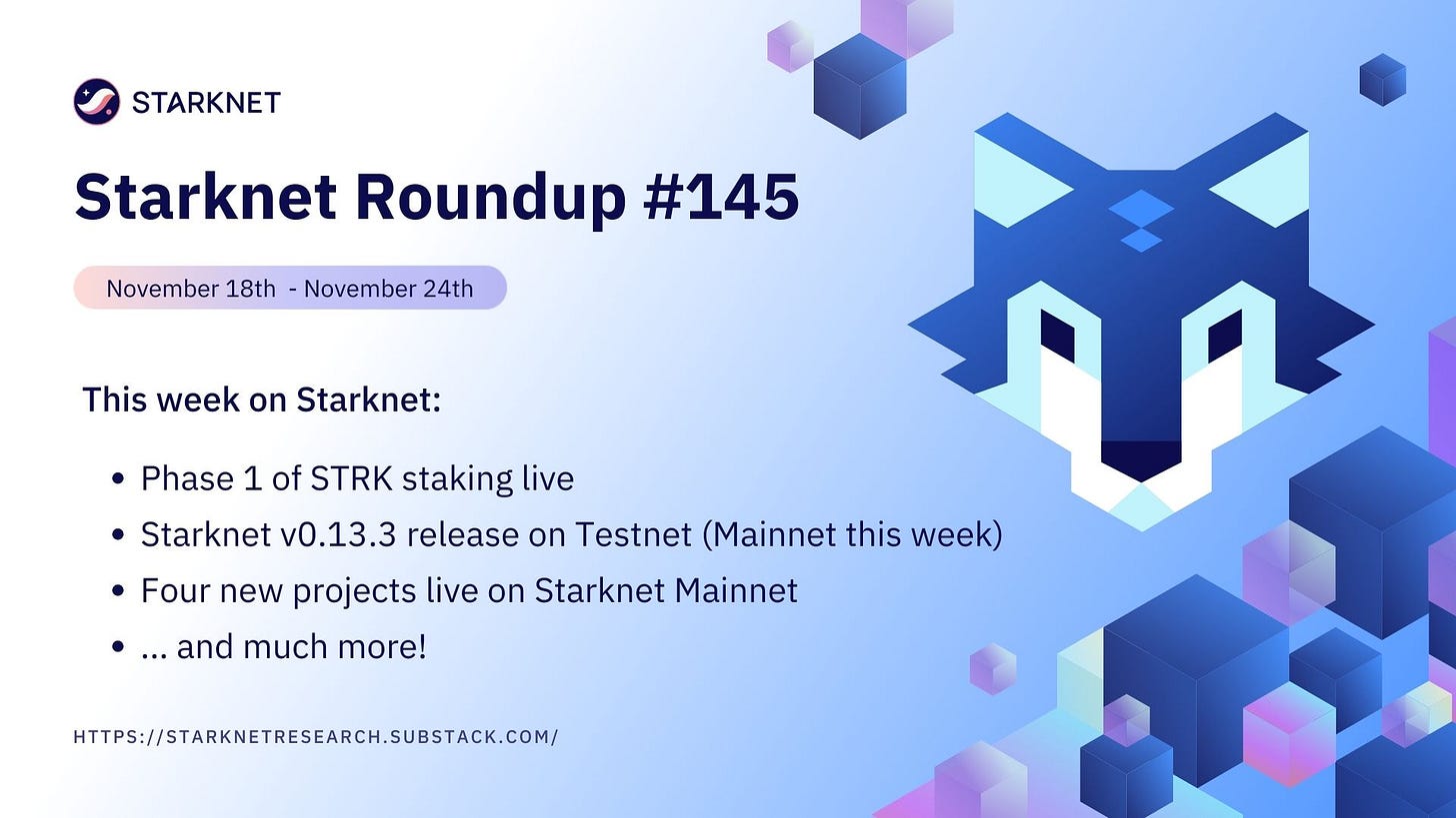 Welcome to the 145th edition of my weekly comprehensive Starknet summary. Reading this newsletter allow you to catch up on all the important news from the last week in just 10 minutes of reading.