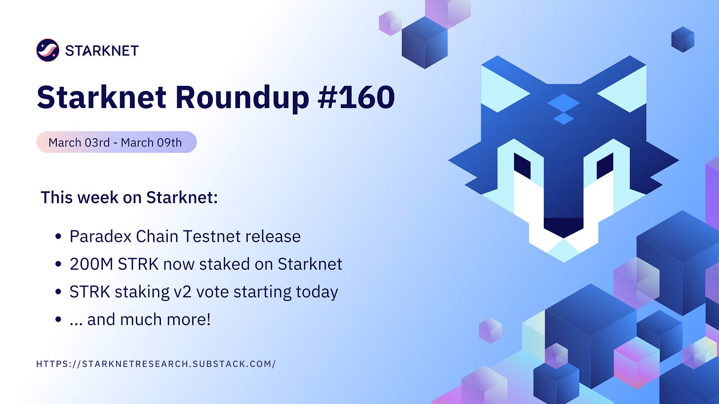 Welcome to the 160th edition of my weekly comprehensive Starknet summary. Reading this newsletter allow you to catch up on all the important news from the last week in just 10 minutes of reading.