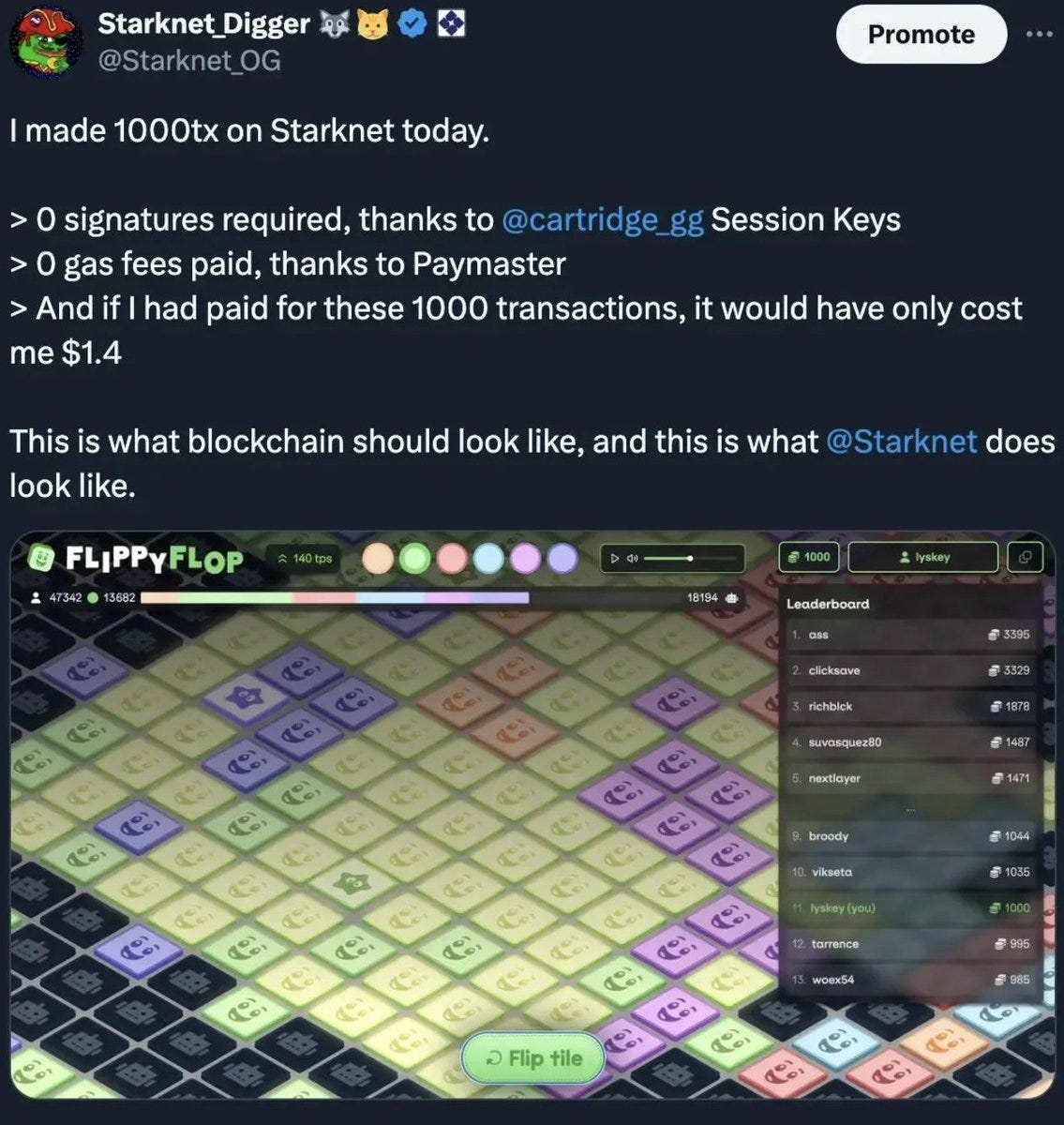 Gasless onchain gaming: Thanks to Paymasters, gamers playing (again) Dojo-powered games don’t need to pay gas fees while playing (for some games, not all), even when the games are fully onchain.